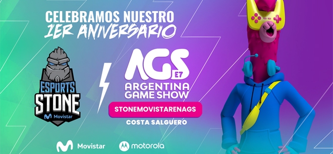 STONE Movistar Esports, el equipo liderado por Diego Schwartzman, estará participando de la séptima edición de la Argentina Game Show (AGS) 2021 en el marco del festejo de su primer aniversario. De la mano de Movistar y Motorola, el equipo tendrá un stand lleno de contenidos para que todos los asistentes puedan sentirse pro players por un día. El evento se llevará a cabo durante 3 jornadas: 10, 11 y 12 de diciembre en el predio Costa Salguero, con entrada gratuita.