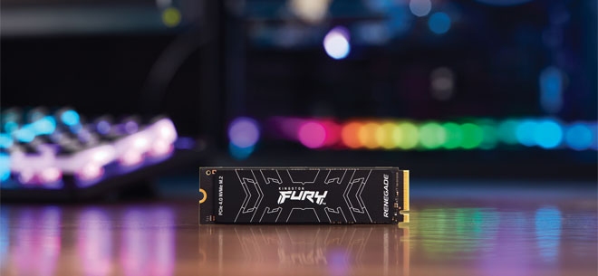 · El SSD M.2 Kingston FURY™ Renegade Gen 4x4, capaz de alcanzar velocidades de hasta 7,300 MB/seg. Este dispositivo está diseñado con un difusor de calor de grafeno y aluminio para mantener el dispositivo frío.
