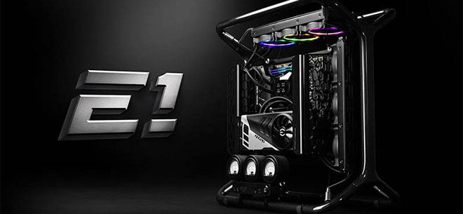A la hora de jugar, el componente más importante es la tarjeta gráfica, y en este caso, la EVGA E1 utiliza una tarjeta gráfica K|ngp|n de próxima generación aún no anunciada, alimentada con una fuente de 1600W de edición especial recubierta en fibra de carbono 3K que permitirá overclockear al máximo todos los componentes del sistema sin preocupaciones.