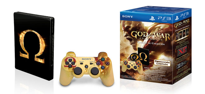 "Tenemos varias ediciones especiales que van a salir en Latinoamérica. La primera es una PlayStation 3 de 250GB de memoria, color blanca y nada mas estará disponible en Latinoamérica, y este paquete contiene los 4 discos con todos los juegos de God of War: God of War Ascension, God of War 3, God of War Collection (1 y 2) y God of War Origins Collection (Chains of Olympus y Ghost of Sparta).
