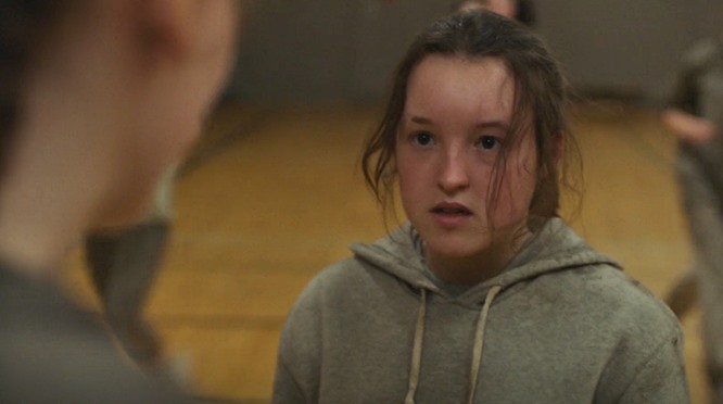 La cita en el shopping lleva a aumentar la tensión. La química que Bella Ramsey y Storm Reid demuestran es magnífica en todo el capítulo. Como se acercan, se alejan, flirtean torpemente para probar si hay o no agua en la pileta, situaciones con las cuales es muy fácil sentirse identificados ya que la gran mayoría de nosotros pasó por ellas. En especial las escenas de Victoria´s Secret y la cabina de fotos son muy representativas. En la primera, con Riley “bromeando” sobre ver a Ellie en lencería, y las reacciones de esta; y en la segunda, donde de a poco van aumentando el contacto físico hasta que “se dan cuenta” y se separan. Al mismo tiempo, estas situaciones y actitudes nos dan entender que se trata de dos adolescentes que todavía no han dejado del todo de ser niñas, pero que se ven obligadas por el mundo en el que viven a tomar decisiones muy adultas, como el hecho de formar parte de las Luciérnagas y todo lo que eso conlleva.
