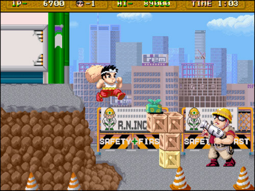 En mi memoria, entre todo ese caos de añorados recuerdos sobre videojuegos de la época, ubicado junto a otros clásicazos como el Out Run, el rompedor Street Fighter 2, esa genialidad llamada Sunset Riders, el bizarro Prehistoric isle in 1930, el mítico Final Fight y un extenso etc, sobresalía un "titulito ponja", difícil y adictivo como ninguno. Estoy hablando de Daiku no Gen-san: Beranmechou Soudouki, o como lo conocimos por estos lares, "Hammerin' Harry".