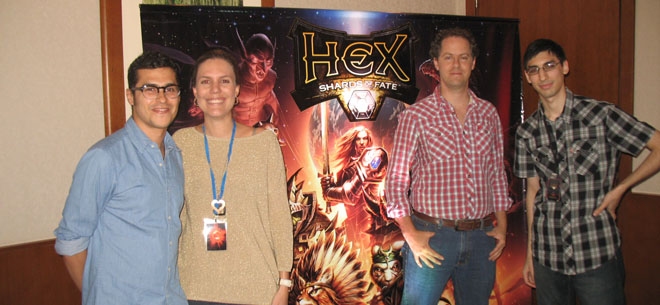 Lo primero que me gustaría hablarles es sobre el desarrollador, su nombre es Cryptozoic y es americano con base en California (USA). Su fuerte histórico no son los juegos de PC, sino que ellos tienen mucha mas experiencia tanto en juegos de mesa como en juegos de cartas. Por ejemplo son los encargados del TCG de World of Warcraft y con toda la experiencia que tienen de estos mundos crearon HEX como su primer juego digital con muchas ideas que ellos anteriormente habían querido hacer pero que solo podían implementarse de forma digital. HEX nace a través de una campaña en Kickstarter, ellos publicaron el proyecto buscando 300.000 dólares y recaudaron mas de 2 millones de dólares y tienen el apoyo de mas de 17.000 personas. Desde el momento en que se lanzó la campaña ya el éxito de HEX es impresionante, desde aquel entonces conocimos el juego y nos acercamos a Cryptozoic con la idea de poder publicar para la región.