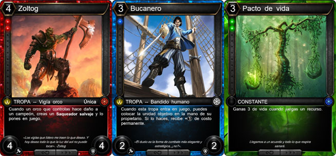 - Tropas (criaturas con ataque y defensa quienes se encargarán de derrotar al enemigo).