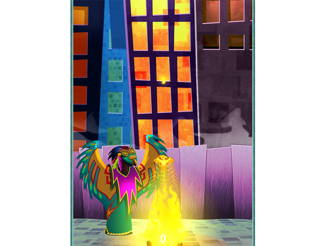 La idea de poner un chamán era por que queríamos darle al juego un significado extra a ser solo un juego más. El chaman representa un quiebre natural sobre la vida urbana.