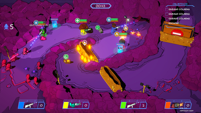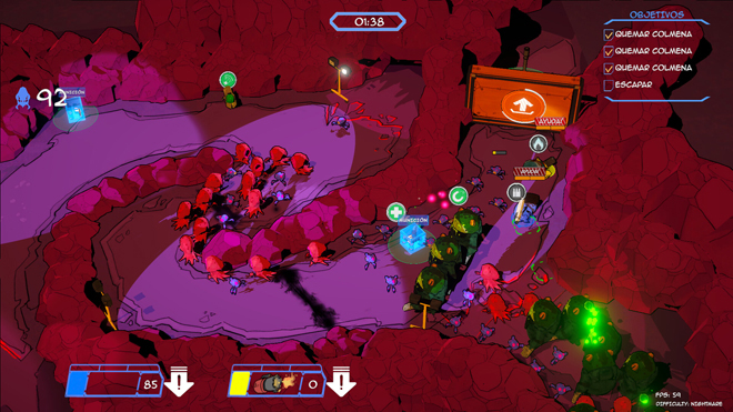 Nicanor: La idea o inspiración viene de juegos como Overcooked y un poquito también tiene aspectos de Helldivers. Pero si, nació más que nada por Overcooked el tema de lanzarse las herramientas, reforzar la cooperación y que cada uno haga algo. La propuesta invita a que todos los jugadores estén en todo momento activos, trabajando para cooperar entre sí.