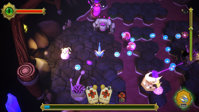 Es un juego auto-attacker con características de deckbuilder, en donde encarnás a un personaje de una aldea que es destruida por una bruja. Éste agarra un sombrero que provoca que un demonio lo controle, y su misión es vencer a la bruja que destruyó a su aldea. Entonces pasás por niveles donde tenés que ir matando a los esbirros de la bruja hasta que llegás a enfrentarte con ella.