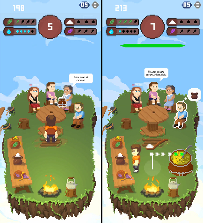 Maxi: Exactamente. Hay diferentes personajes y tienen diferentes gustos. Y bueno, está el mate amargo, mate dulce, mate con yuyo. Hay un personaje al que le gusta hablar y hablar, y entonces le tenés que sacar el mate de las manos. El juego siempre tiene algo nuevo para ofrecerte. A medida que van subiendo los niveles, siempre aparece algo nuevo que te hace decir "uy, ¿ahora éste qué quiere?". Así que después de varias rondas se sigue manteniendo interesante.