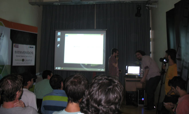 Ya eramos un enorme grupo en la sala, esperando para la presentación. Muchos (y me incluyo) no emitían palabra alguna, otros conversaban con amigos, e incluso otros ya empezaban a hacer amistades nuevas. Era difícil vernos e imaginar que en 48 horas íbamos a estar todos cagándonos de risa como un enorme grupo de amigos. Y es que fue así, ese estado en el que todos estamos en la misma, corriendo todo un finde para lograr hacer un videojuego, nos pone en una situación de cooperación máxima. Con solo pasear por Image Campus te ibas a encontrar a alguien que te pedía una opinión sobre algo, ayuda, testeo, etc. Pero esto no sería posible tampoco si no fuera porque toda la gente era la más buena onda que te podías encontrar; saber que estás rodeado de personas a las que le apasiona lo mismo que a vos no tiene precio.