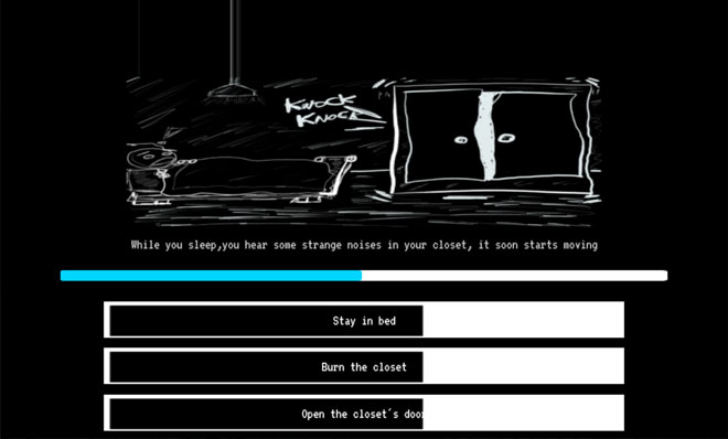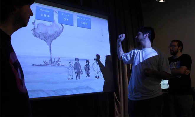 "Partiendo de la premisa "¿qué hacemos ahora?", lo primero que se nos vino a la cabeza fue hacer una especie de "Elige Tu Propia Aventura". En el juego vamos a encontrar muchas situaciones muy cortitas que te plantean una pregunta con dos posibles soluciones. Está pensado para que se juegue de a muchos (hasta cinco a la vez), es decir que sería un "Elige Tu Propia Aventura" masivo si se quiere, con aventuras hilarantes y cómicas. Entonces vamos a tener la pregunta y la decisión del grupo, lo cual va a llevar a una decisión mayoritaria, y en base a eso hay una consecuencia para los que eligieron una opción y para los que eligieron la otra. Las consecuencias son siempre perder o no puntos de vida. El juego tiene una pequeña historia y ganan los que más lejos puedan llegar sin morir". VER