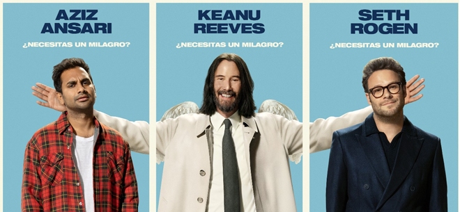 La hilarante nueva comedia escrita y dirigida por Aziz Ansari, y protagonizada por él mismo junto a Seth Rogen y Keanu Reeves —en el papel de un ángel poco común— revela sus primeras imágenes