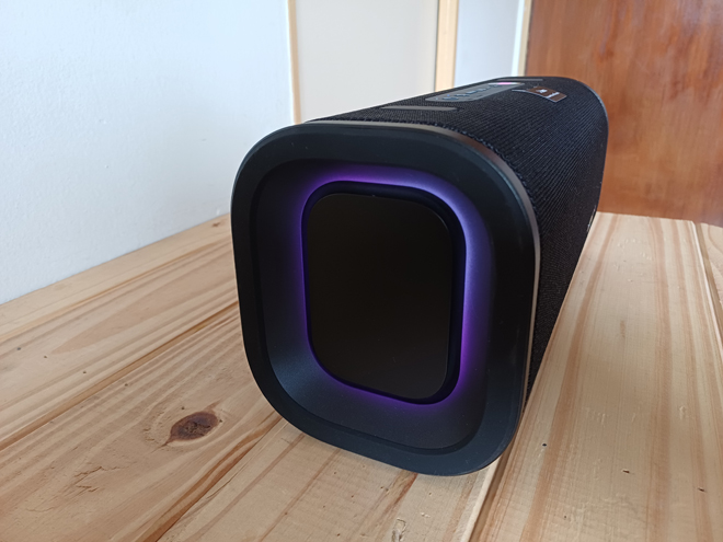 Como verán en las fotos, a mí me tocó el modelo negro, pero también lo pueden conseguir en blanco. Ambos son bellísimos, muy estéticos y listos para que lleves a cualquier fiesta, tanto a puertas cerradas como al aire libre; tienen juego de iluminación con colores personalizable, no hay drama si se mojan, los transportás muy fácilmente con una correa incluida en la caja, la batería te dura 25 horas (o hasta más), tiene carga rápida, y más cualidades que lo hacen un parlante muy destacable.
