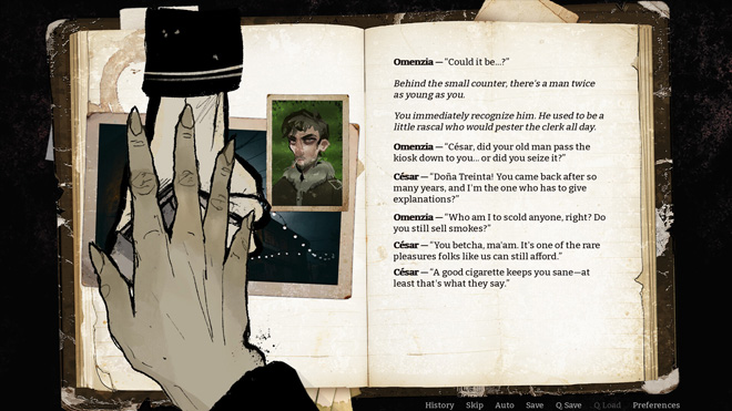 Flo: El juego es sobre una abuela, Omenzia, que anda buscando a su familia desaparecida. Ella vive afuera, en un pueblo llamado La Pampa, y tiene que volver a Bahía Blanca porque recibe una carta; este es el llamado a la aventura que tiene ella. Es una Visual Novel. La idea es seguir produciéndola; ahora estamos en Orillas Nuevas, un fondo que sirve para impulsar el proyecto, y queremos que sea un poco más interactiva que las Visual Novels.