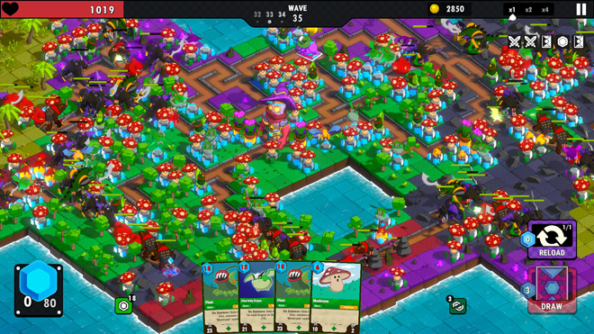 Presenta una mezcla de géneros: es un tower defense mezclado con roguelike y con juego de cartas. Vos tenés tu torre, y tenés que ir expandiendo el mapa de forma procedural. El mapa se genera al inicio, va a ser distinto en todas las partidas, y vos lo vas descubriendo. Después también vas a ir construyendo tu mazo a medida que vas jugando. Además tenés interacciones; por ejemplo, las cartas que vos tenés tienen atributos y éstos matchean con el bioma que hay en el mapa. El mapa está pintado de colores y vos tenés que armar tu mazo a medida que vas descubriendo el mapa, e ir agarrando cartas que a vos te sirvan y que matchen con el mapa. Las cartas tienen sus efectos únicos, y vos tenés que hacer sinergias y distintas estrategias porque si no a largo plazo no durás.