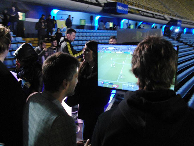 La pantalla gigante sirvió de puente para ver las novedades que tendrá el juego, entre las cuales destacan la presencia de la Bundesliga y las selecciones femeninas de fútbol, que, por vez primera, pisan el césped de Electronic Arts.
