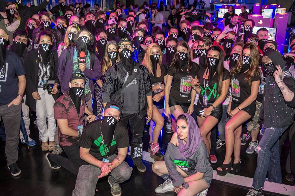 Pero antes de poner nuestras manos en la estrella de la noche, fuimos testigos de un espectáculo coreográfico con Hackers sacados directamente del juego, quienes se apersonaron en las instalaciones para hackear el lugar y así decir presente. Al instante, Nancy Avella, Key Account de Ubisoft Sudamérica, ocupó el escenario principal para contarnos las bondades del nuevo juego. Inmediatamente, Pablo Toscano, Lead Technical Artist de Ubisoft Quebec, subió a hacerle compañía no sin antes aclarar que si bien es un desarrollador, no pertenece a esta franquicia, sino a la archi popular Assassin's Creed (trabajó en el último Syndicate). De igual forma su presencia fue una buena oportunidad para la prensa para tomar contacto con alguien que está íntegramente metido en lo que supone el desarrollo y producción de un videojuego. Desde playNOmore tuvimos la oportunidad el año pasado de hacerle una entrevista acerca del juego de asesinos en el marco de un festival realizado en la escuela Da Vinci.