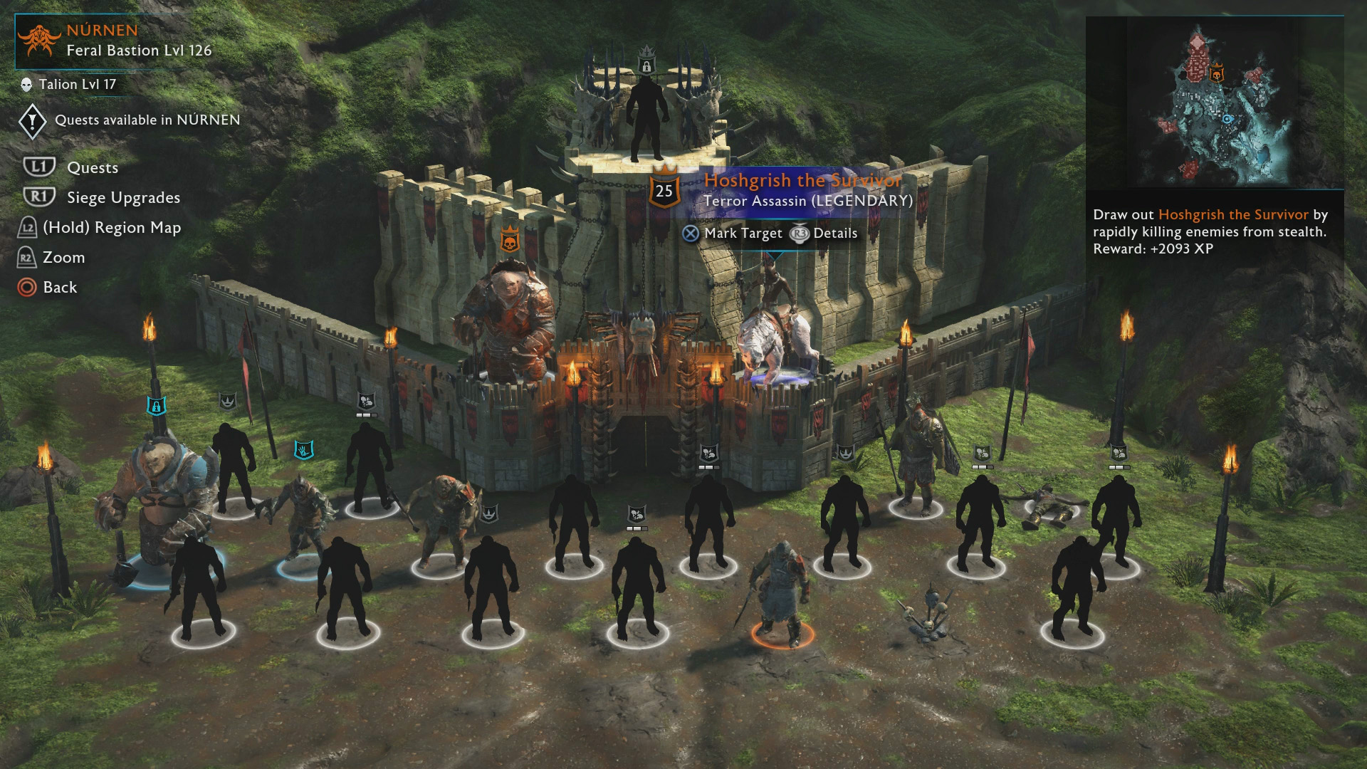 Pero como ya dijimos, la principal novedad es la de crear ejércitos de Orcos que nos ayuden a conquistar este mapa. Y esto, que se logra una vez avanzado el juego, es la base fundamental de esta secuela. Cada escenario tiene un fuerte dominado por un Overlord, el cual a su vez tiene varios Jefes de Guerra a su mando. Además, en el escenario hay varias misiones repartidas donde podemos interactuar con otros capitanes de menor rango y nivel. Aquí es donde seguramente empezaremos a controlar a los Orcos para armar nuestro ejército con el cual atacaremos el fuerte. Podemos hacer un ataque directo con todo lo que ello implica (detener a los Jefes de Guerra que defienden al Overlord) o podemos ir matando a estos para luego hacer un ataque más certero a un fuerte más vulnerable. Cada vez que atacamos uno de estos fuertes, deberemos conquistar ciertos puntos dentro del mismo, abriéndonos paso a puño limpio con nuestros seguidores. Una vez conquistados estos puntos, podemos acceder a la batalla final contra el Overlord dentro del centro de mandos. Estas batallas no son nada fáciles ya que no solo peleamos contra el Overlord, si no que también debemos esquivar trampas y defendernos de algunos secuaces del Jefe.