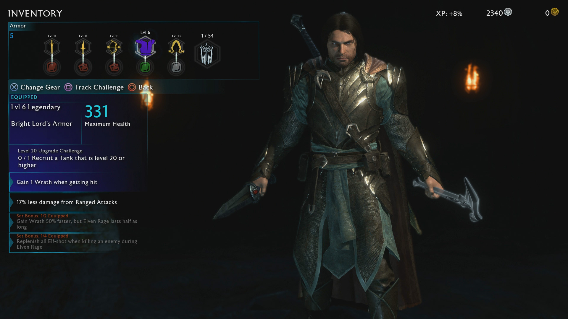 Además, tenemos los ítems a mejorar completando misiones (que nos dan nuevos accesorios) o incluso usando la moneda del juego (si completamos ciertos desafíos). Talion tiene una espada, una daga, un arco/martillo, una capa y una armadura. Todos son mejorables e intercambiables. Lo único malo es que estéticamente me hubiese gustado que el personaje realmente sufra algún cambio notorio, pero es que la mayoría de los accesorios que vamos descubriendo apenas se diferencian entre ellos.